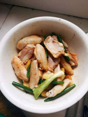挑出葱姜蒜(葱姜蒜在鸡翅里会影响成品,所以尽量切大块,挑出去)