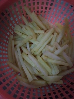 放入油锅里炸成金黄色,再撒点细盐搭配蕃茄酱味道特别棒,绝不逊色麦当劳肯德基。