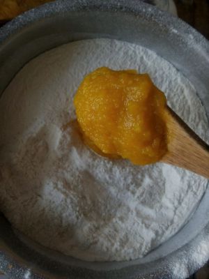 然后面粉内加入南瓜泥,