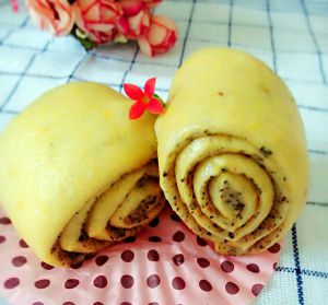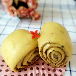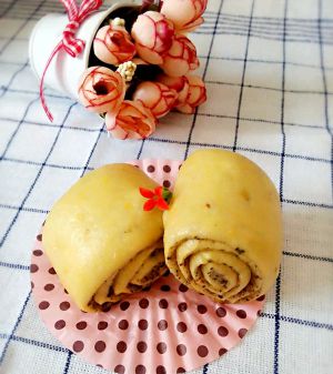 南瓜泥黑芝麻馒头出锅了