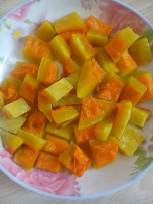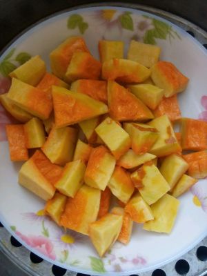 切好的南瓜块放锅内蒸熟