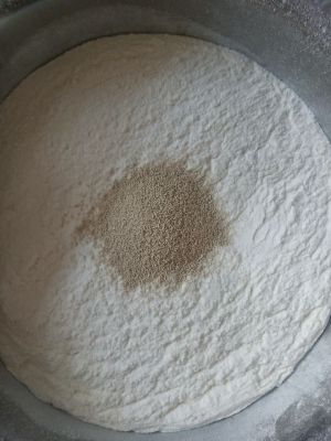 面粉内加入酵母混合在一起