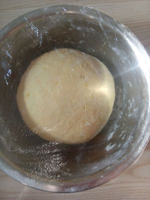 揉成光滑的面团,蒙保鲜膜放置在一边发酵。