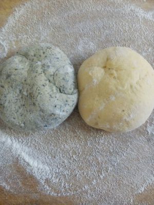 揉成光滑面团,再取一份加入适量的黑芝麻粉揉匀。