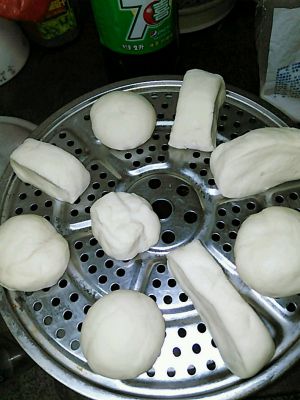 第三部就是选择发面程序等啦!!如果没有面包机那就揉啦!要到三光才可以!如果前面牛奶放多了这部揉就可以慢慢加面粉!260克左右面粉正好蒸一盘!当然大胃王的喔不够塞牙