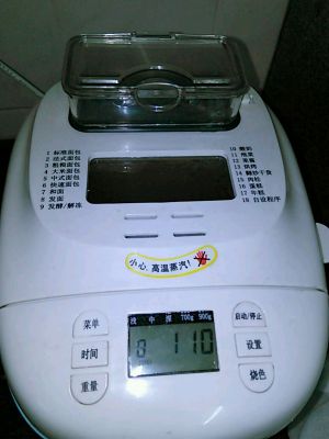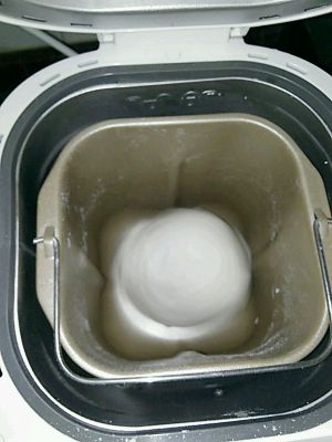 材料倒入面包机,开启和面15min,然后发酵一小时