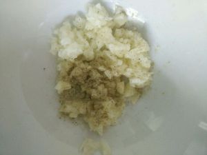 蒜拍一下,好剥皮。小窍门。切蒜末。