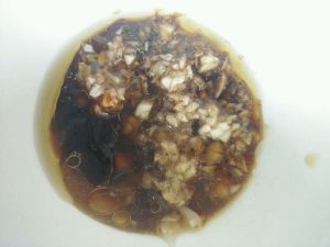 浇上去。有花生米的,香菜的都可以放。我家里没有,就没放。