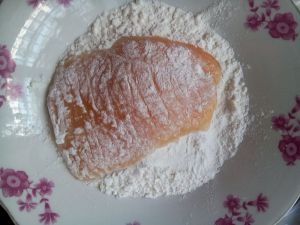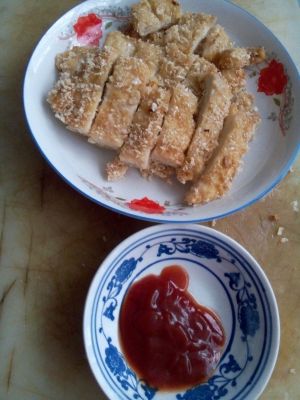 然后放鸡蛋液里,两面都要沾鸡蛋液
