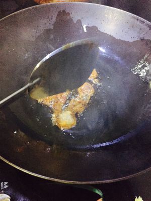 4:开小火将冰糖融化,金黄色即可。