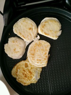 放电饼档煎一下,在放一个鸡蛋,出锅