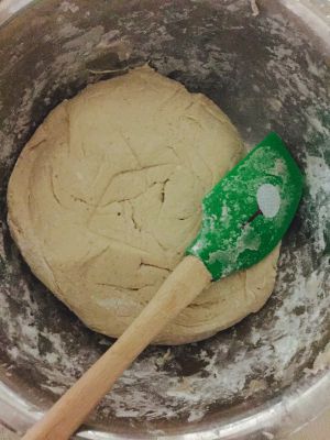 酵母粉温水化开和面粉一起加入和成面团等待发酵