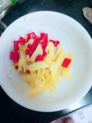把剩余的泡姜泡椒切好放碗里