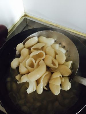 锅内烧水,加入搓好的猫耳朵,煮到八成熟,捞出浸入冷水中
