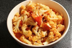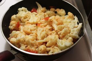 当菜花与番茄你中有我,我中有你了。这时候把番茄酱倒进去!翻炒!(番茄酱的量可以按照自己的口味调整)
