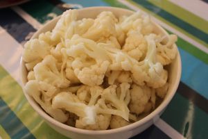 首先将菜花洗干净,掰成小朵,嫌麻烦可以直接刀切哈,然后开水焯一下