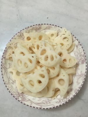 莲藕切成薄厚适当的片!备用!
