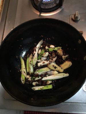 起锅烧油,放入葱姜和一小块火锅底料