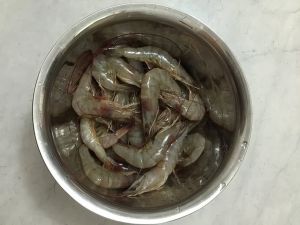 虾,挑出虾线,剪掉虾须,洗净备用。
