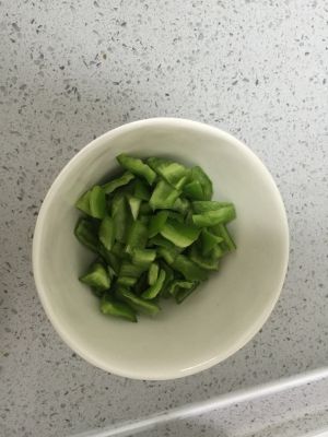 青椒洗净去蒂切成小块待用。