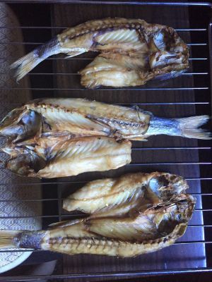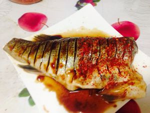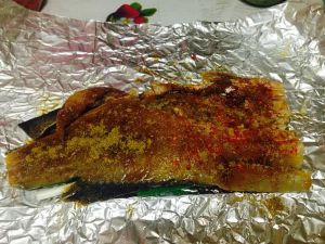 鱼切块,倒入酱油,蒜(切片),姜(切片),适量盐(其实不爱咸可不放)腌制一会,直接入烤箱考就可以了,在烤盘上刷一层油,考至熟就OK,如果想要味道更好,可以撒些孜然,味道顶呱呱!