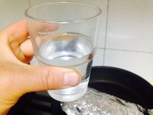 锅里倒入半杯清水盖上锅盖用中火煎煮,将水煮干,这样烤出的鱼就不会太干柴