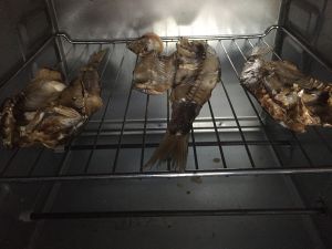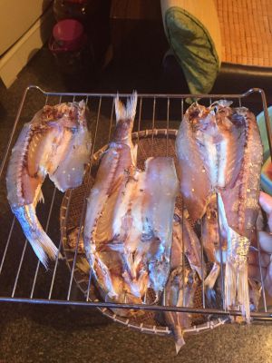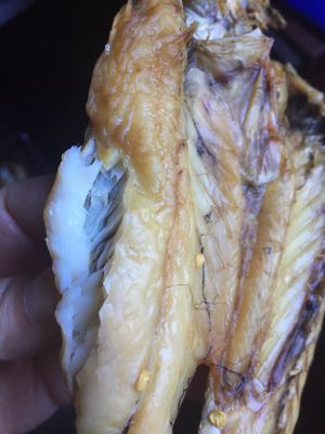 前面用盐水加料酒腌制的图没拍 这图是腌制一夜后太阳下晒了一早上的图 基本控干水份了。可以上烤箱烤