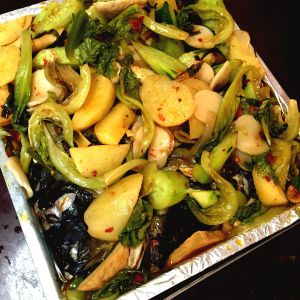准备自己喜欢的蔬菜用热水焯烫一下备用。我准备了土豆、莲藕、芹菜、干豆腐、木耳,大家可以根据自己的喜好准备蔬菜。