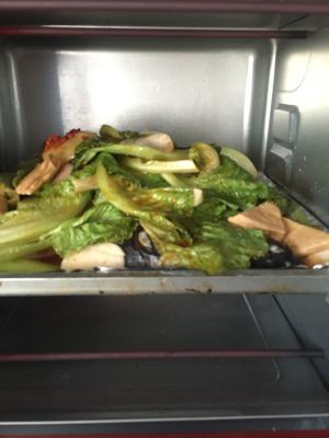 鱼烤好后,倒入蔬菜和酱汁再进烤箱烤10分钟就OK了。