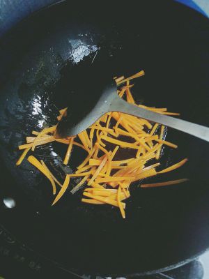 切丝的胡萝卜用油爆焦,味道特别香
