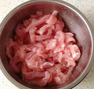 猪里脊肉清洗干净切成粗细均匀的肉丝