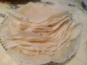 买的现成春卷皮。平底锅烧热每张皮热一下。增加嚼劲。