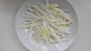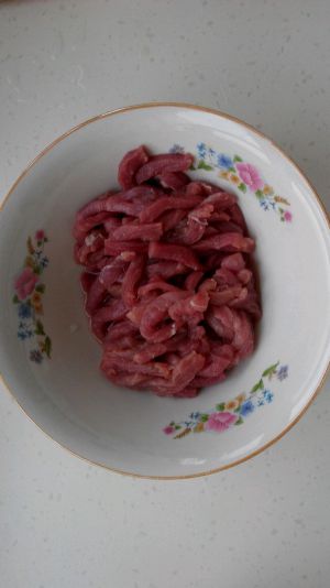 准备200g里脊肉,洗净切成丝,切得比较细一点儿。