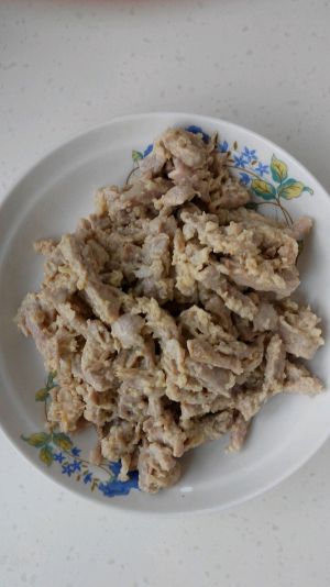 用料酒,盐,鸡蛋清,淀粉,肉丝倒在一起用手抓匀,后放点油搅匀后放在冰箱冷冻10分钟