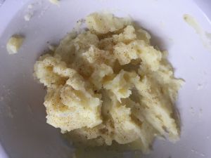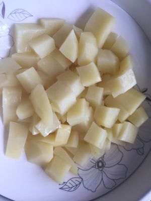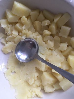 将蒸好的土豆去皮,弄碎