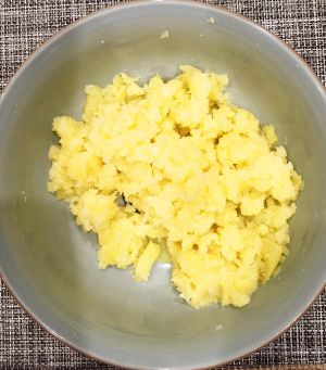 土豆洗净,去皮切成小块,入微波炉叮三分钟左右,用勺子或者打蛋器将土豆压成粉状