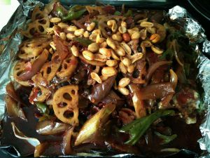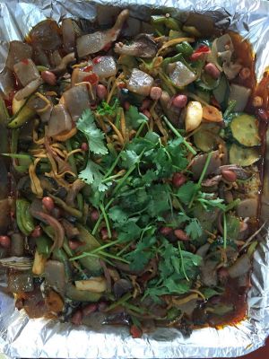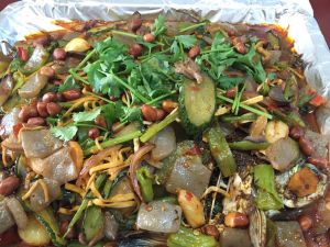 第二十四步:最后撒上香菜叶和花生米,香喷喷的烤鱼就可以上桌,开吃罗…