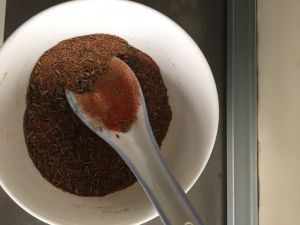 第十三步:把孜然、胡椒粉、辣椒粉混合均匀备用。