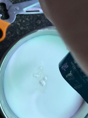 先倒一点全脂纯牛奶,再放乳酸菌搅拌均匀,最后把剩下的牛奶倒进去