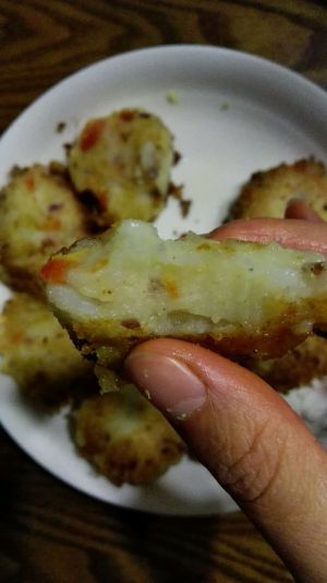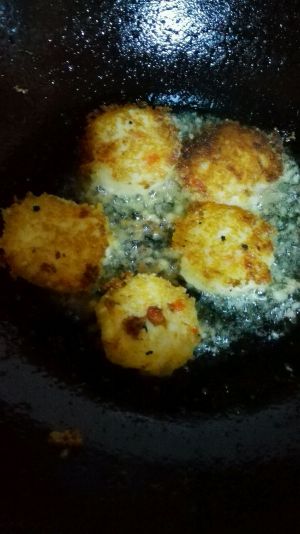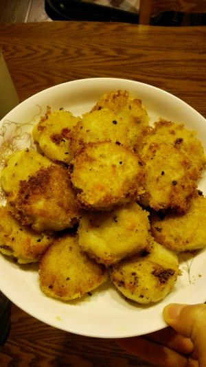 炸至两面金黄轻轻铲出锅,土豆泥非常软,铲时一定要小心,而且不能频繁来回翻动,容易碎的,可用锅轻轻晃动让油炸到两边~