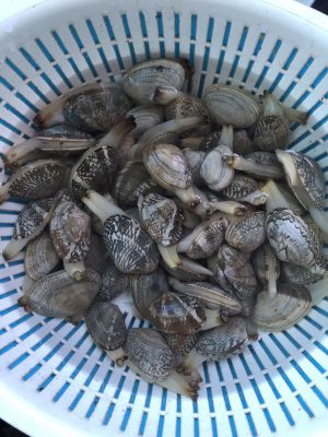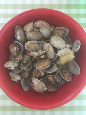 花蛤买回来放在水中吐沙一段时间,吐好沙控水控一下。