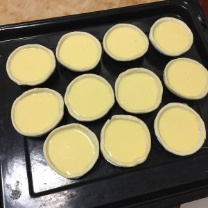 所有材料混合在一起,搅拌均匀,倒入蛋挞皮中,8分满。