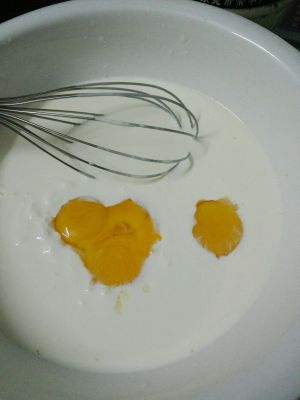 将蛋黄放入搅拌。。。