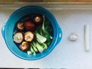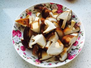 首先把香菇和油菜摘好,放在水中泡15分钟,多泡会儿洗的干净,洗净。