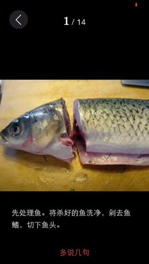 草鱼清理干净,分出鱼头、尾、盔和净鱼肉,将鱼头鱼尾和鱼肉用来做豆花鱼,鱼盔可用来做糖醋熏鱼;