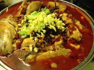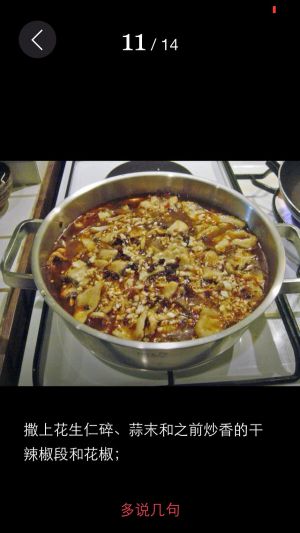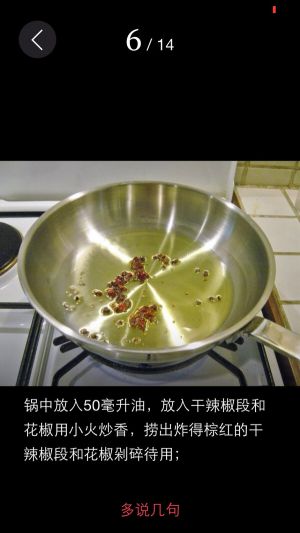 炒锅倒油,炒香花椒、干辣椒。
