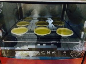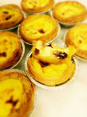烤箱200度预热10分钟.将半成品放入.烤制25-35分钟.在20分钟左右就要勤看烤箱.看蛋挞上色如何.别把表层烤的太胡.