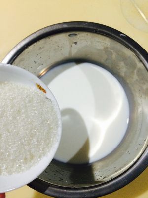 白砂糖加入牛奶中,搅拌加热至完全溶解