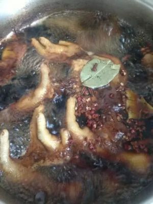 锅内放油,放花椒,姜,蒜,葱,爆香,放鸡爪。放酱油,料酒,水没过