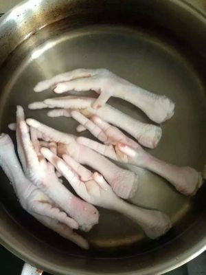 锅里放半锅水,倒入鸡爪,大火煮开后继续煮三分钟。